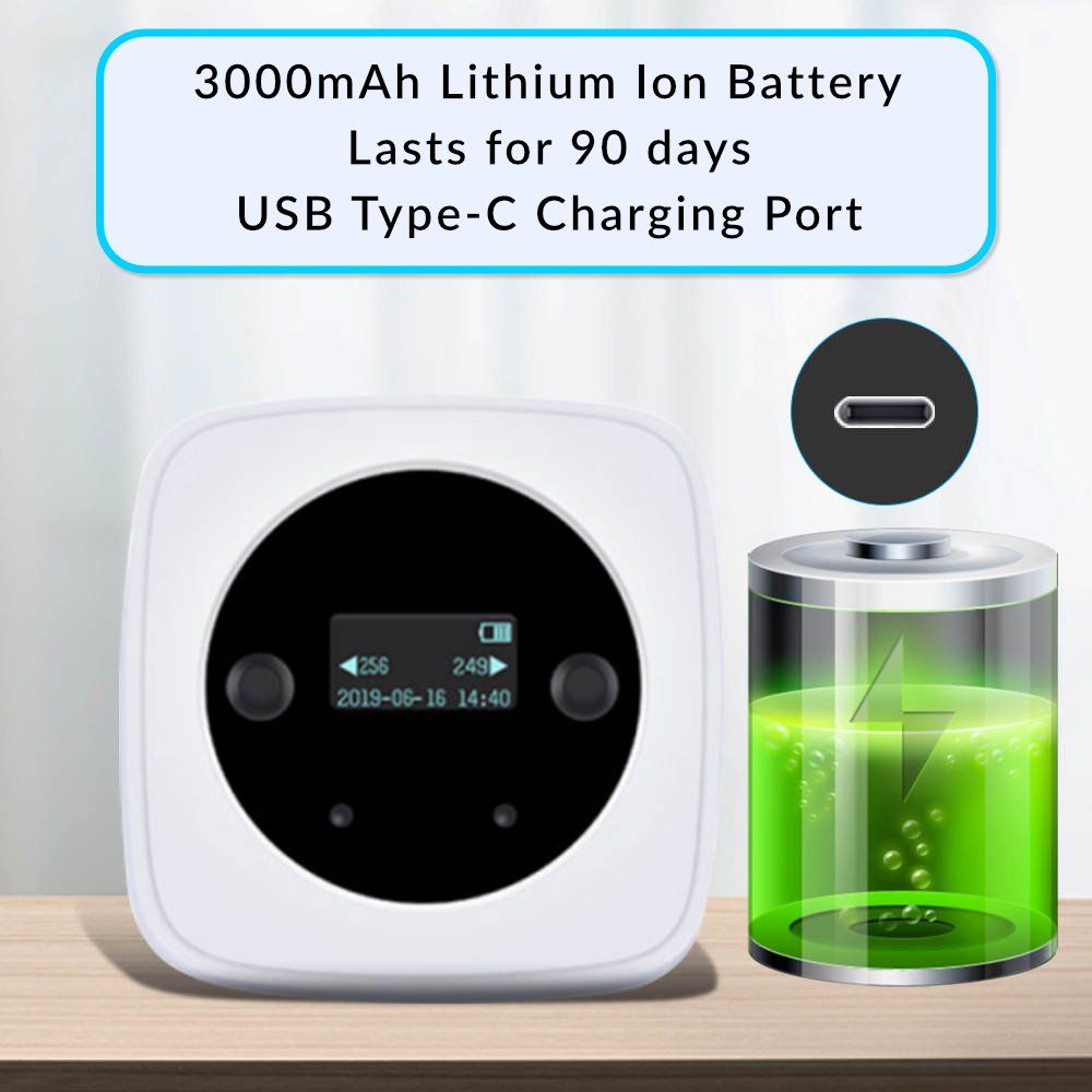 Both transmitter and receiver unit feature a built-in rechargeable battery pack, which will provide power for around 90 days of usage before needing to be recharged.