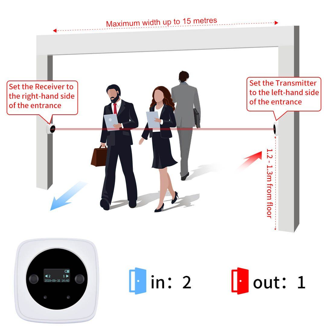The LTB-15-RC occupancy counter features a wall mounted transmitter/receiver, and is capable of producing a beam of up to 15 metres.